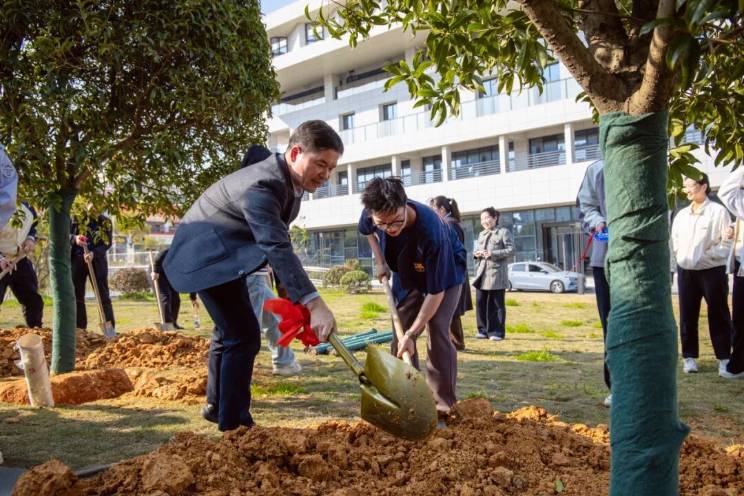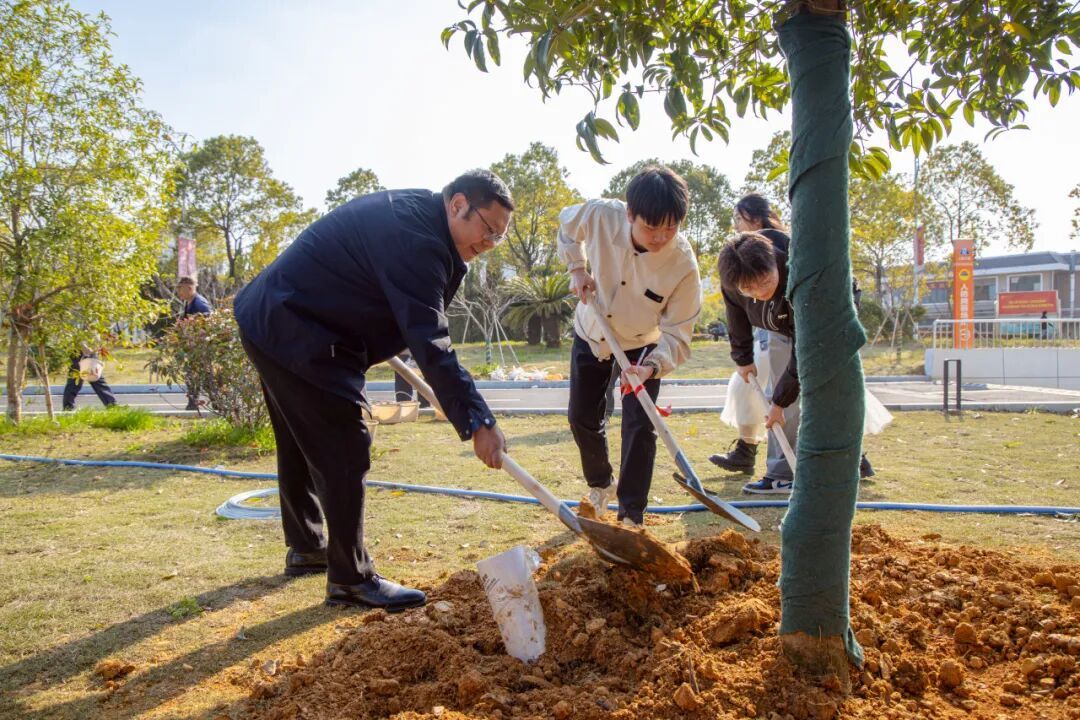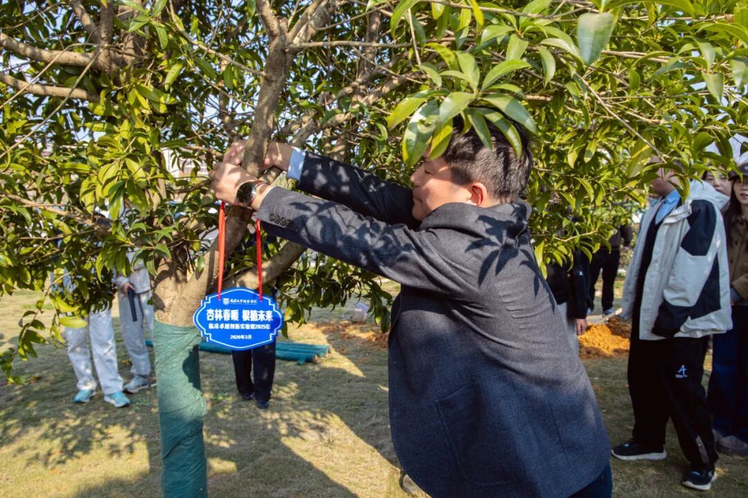 典礼结束后,一场以“杏林春暖,根植未来”为主题的植树活动在焕奎大楼前开展。师生代表携手并肩,扶苗培土、提水浇灌,在春光中共同栽下一棵棵新苗,以植树寄寓育人初心,让绿色希望与医学梦想共同生根发芽。