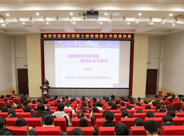 12月22日,中国工程院院士、南方医科大学基础医学院教授高天明应邀做客“前湖讲堂”第四十二期,以《如何做好基础医学研究——我的体会与思考》为题作学术报告。副校长潘秉兴主持报告会。