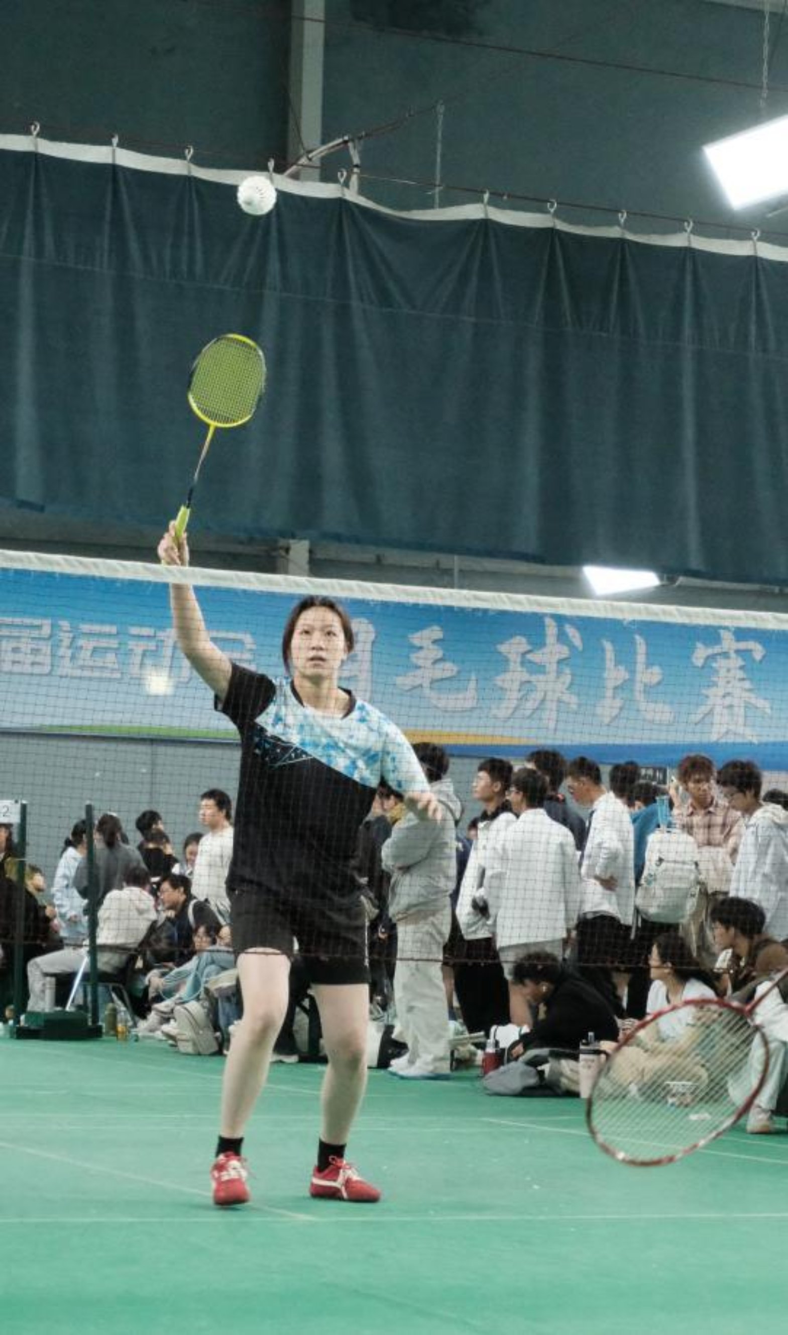 羽毛球馆内,男女子单打比赛正如火如荼。只见轻盈羽球“咻”的一声划破场馆空际,选手们随之弓步急跃、挥拍如闪电,时而高高跃起,精准扣杀,时而攻防转换,汗水浸湿球衣。他们每一次竭尽全力地起跳,每一拍不屈地回击,都书写着永不言弃的体育精神。